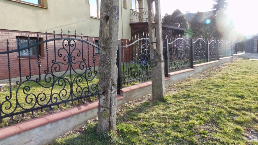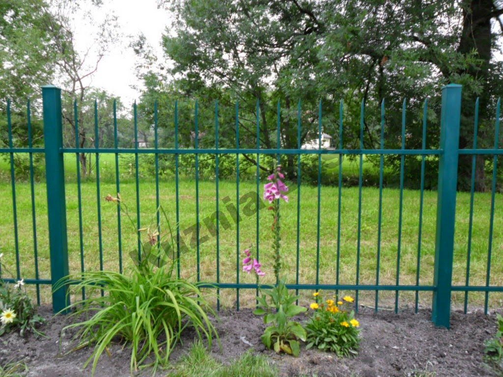 • Ogrodzenie w całości metalowe, jedynie słupy osadzone w ziemi i zalane betonem.