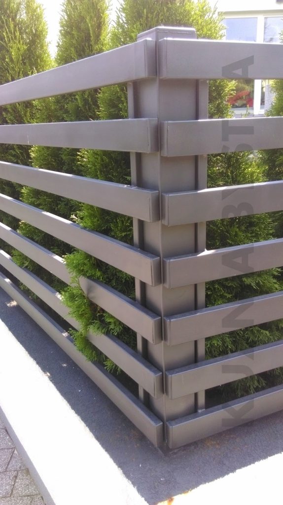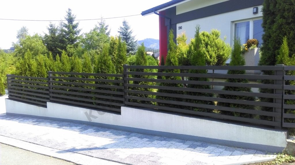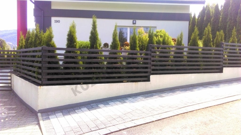 Tam, gdzie ogrodzenie przebiega w linii prostej, ważne jest, by poszczególne elementy kończyły się w jednakowej wysokości, tworząc ciągłą, poziomą linię.