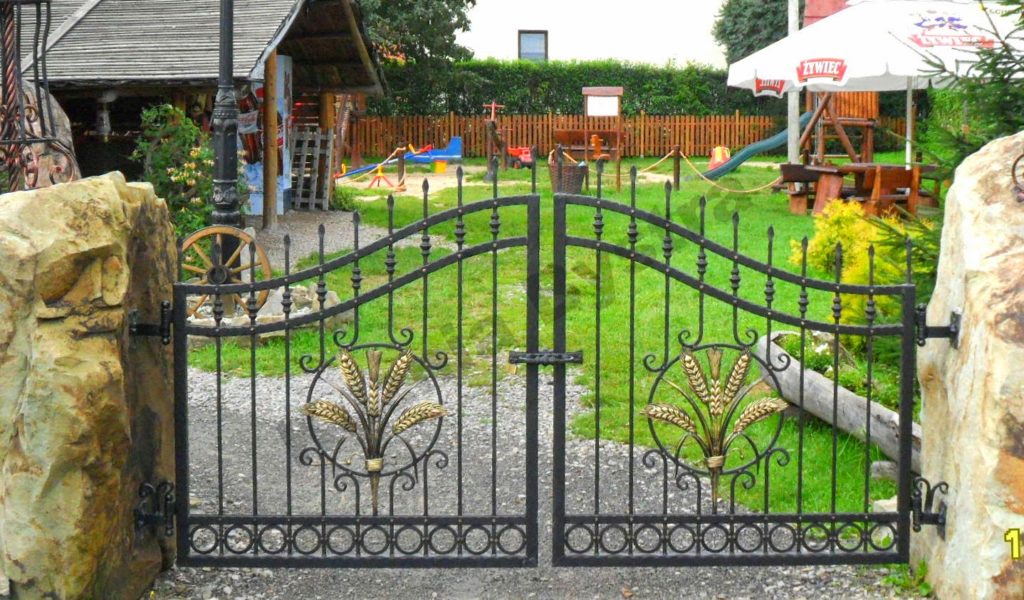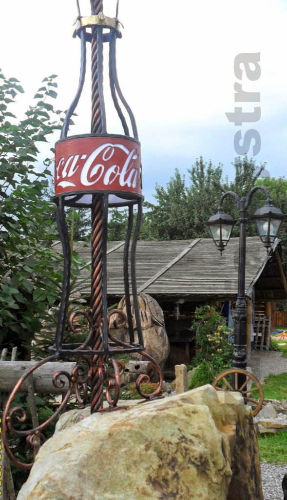 Do tej góralskiej i swojskiej atmosfery prowadzi wykonana przez nas wykuta z metalu brama, osadzona na kamiennych słupach. Kamienne głazy wieńczą po obu stronach metalowe butelki Coca-Coli, które jednocześnie podtrzymują rzeźbiony szyld, opleciony metalowym pnączem. Po bokach zwisają metalowe latarnie. Zapraszamy w to magiczne miejsce, będące z pewnością dumą Węgierskiej Górki.