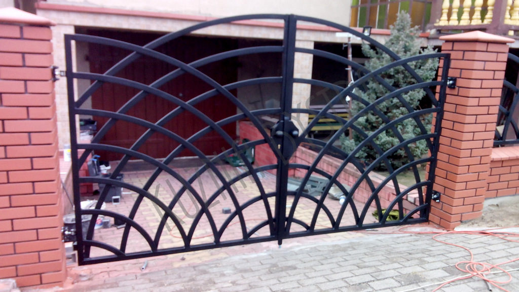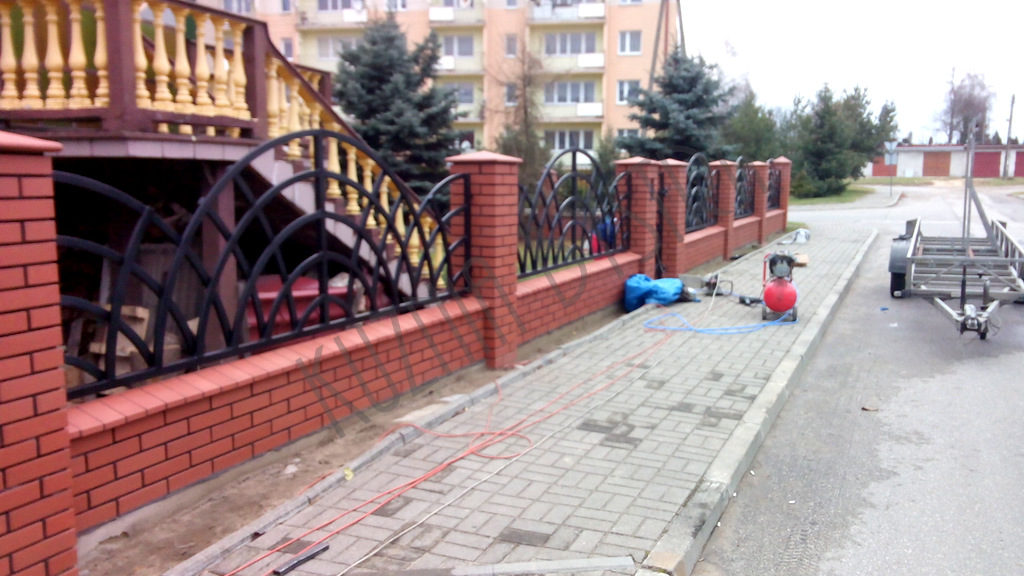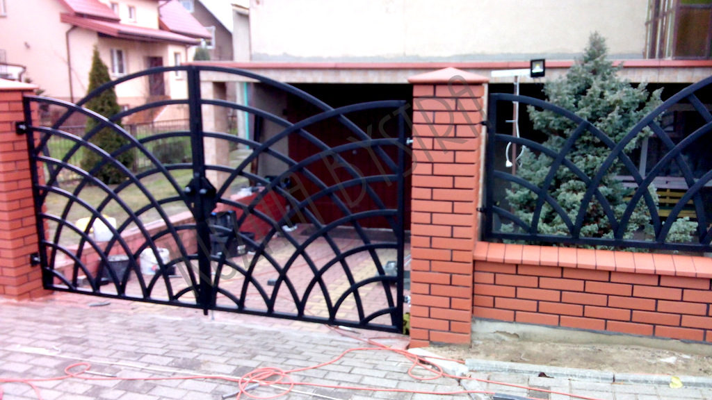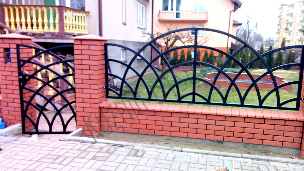 Jak dotąd, na blogu gościły raczej nowoczesne i proste wzory ogrodzeń. Tym razem kilka zdjęć z prac nad bardzo ładnym, w 100% ręcznie zrobionym ogrodzeniem z pełnych prętów, kutych i giętych na zimno. W takim ogrodzeniu bardzo ważną rolę gra symetria i szczegóły wykończenia. Dominantą ogrodzenia są wygięte na kształt serca pręty, które regularnie rozchodzą się na boki w drobniejsze elementy spiralne. Całokształt wzoru jest spójny, tworzy jeden blok. Do wzoru dochodzą wywinięte i rozkute na końcach pręty wypełnienia. Ogrodzenie zakończone jest podwójnym równolegle przebiegającym łukiem oraz delikatnymi grotami. Przęsła z furtką osadzone są na masywnej, kamiennej podmurówce i takich samych słupach.