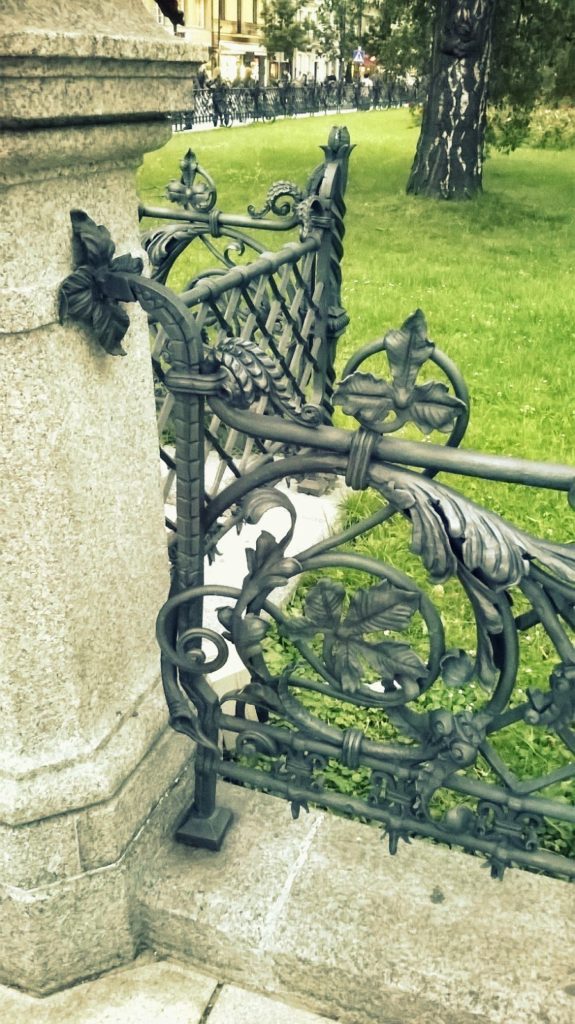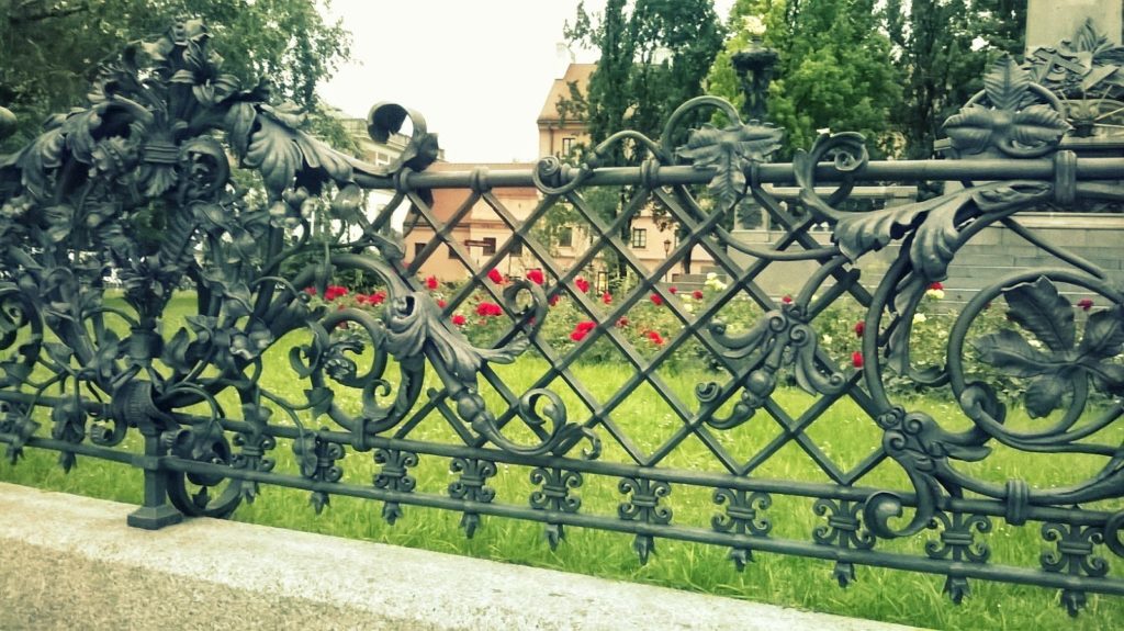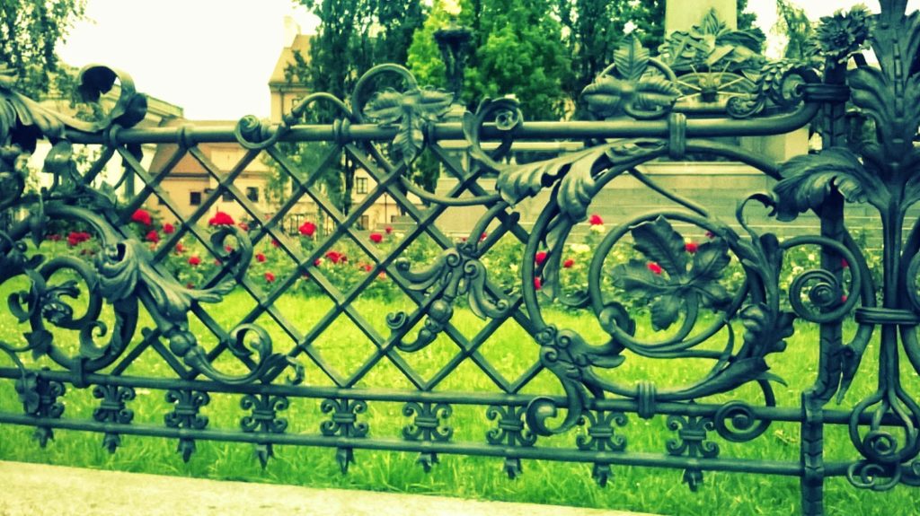Na to ogrodzenie zwróciliśmy uwagę podczas naszych ostatnich odwiedzin w Stolicy. Pomnik Adama Mickiewicza na Warszawskim Powiślu otoczony jest artystycznym parkanem w postaci kutej kratownicy z elementami roślinnymi. Zaprojektowane przez Zenona Chrzanowskiego, znanego architekta z początków XX wieku, wykonane zostało z pewnością przez mistrza sztuki kowalskiej. W każdym centymetrze dostrzegalne jest rzemiosło i fach twórcy. Szczególną uwagę zwracają elementy roślinne, kwiaty i pnącza wieńczące słupy płotu. Narożniki ogrodzenia zdobią kunsztowne latarnie. Całość prezentuje się zachwycająco.